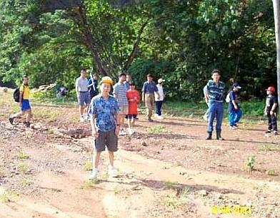 men hunting for wild boar/gaur/serow, tapir (or rhinoceros beetle – with