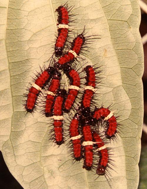 Larvae of Cethosia hysea hypsina feeding on Passiflora foetida.