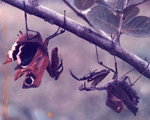 Both are females. eye spots resemble eyes of snake to frighten intruder.