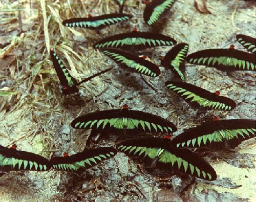 Males congregating on moist spots in Ulu Piah, Perak. Females visit