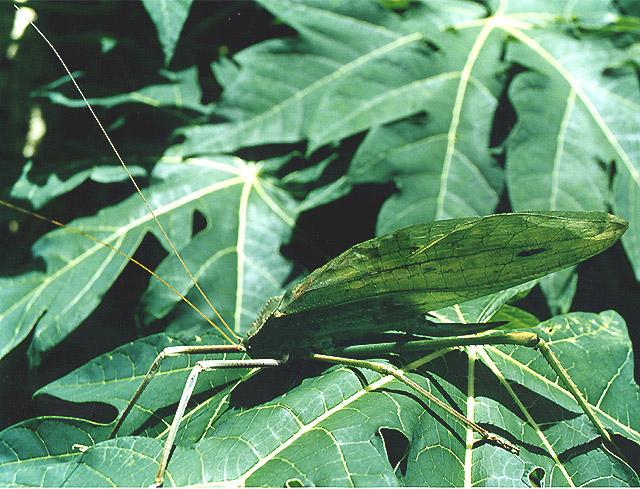 A giant katydid. Makes a piercing noise. Rather rare. Feed on cucumber.