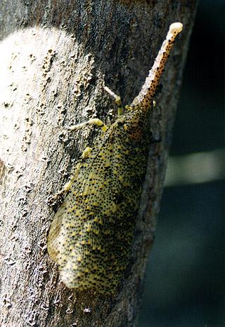 Unusually shaped insect. Fond on tree trunks. Difficult to catch. Tapah